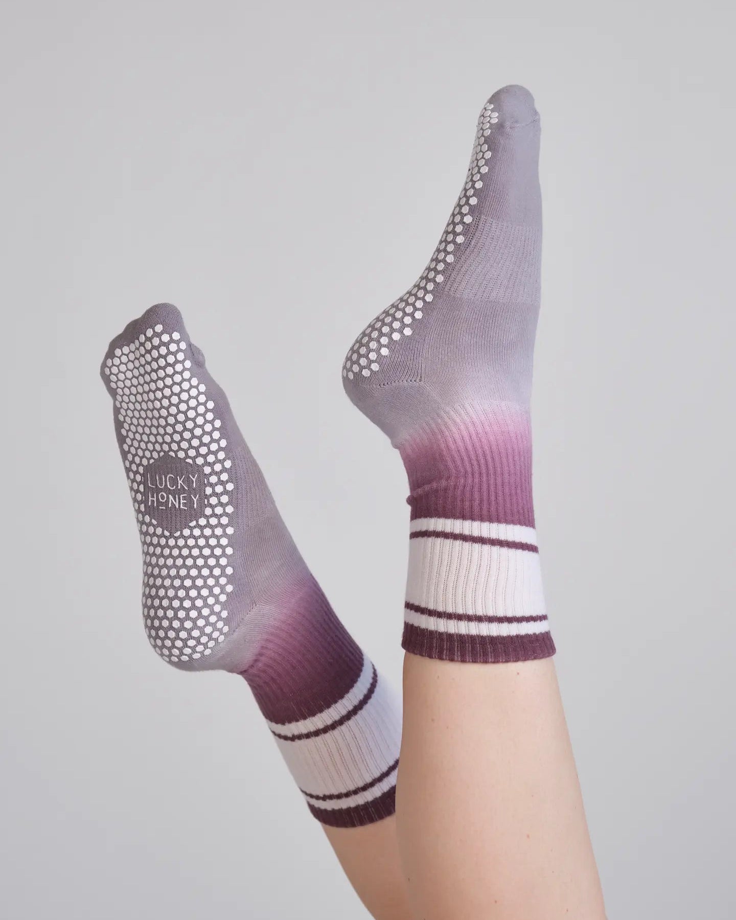 A little retro, a little dreamy. Our newest Ombre Grip Crew brings a fresh spin on classic sport stripes with a soft ombre fade. Violet shades, dusky blues, and auburn neutrals blend effortlessly, making them the perfect pair to step into fall with style, comfort, and ease.